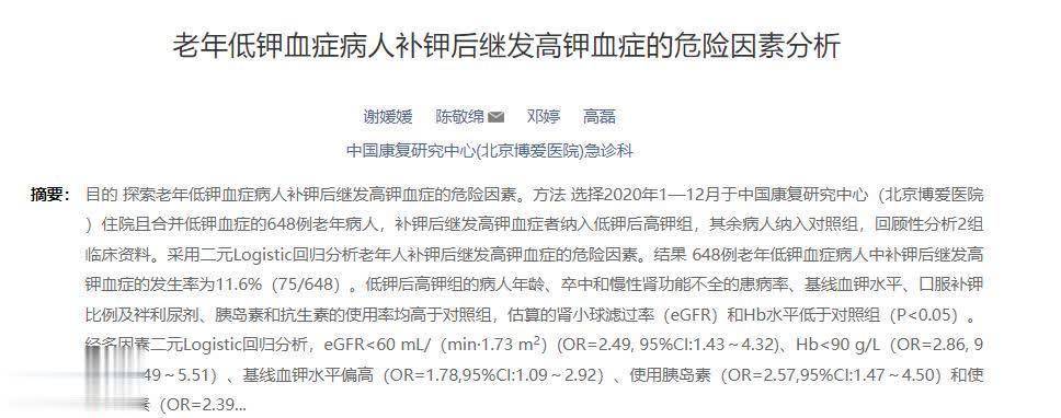 参考资料:[1]谢媛媛.老年低钾血症病人补钾后继发高钾血症的危险因素分析,实用老年医学东莞配资平台,2024-07-20.